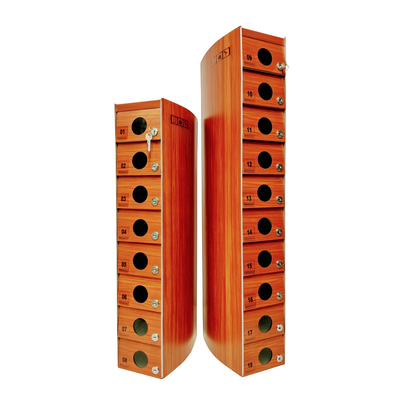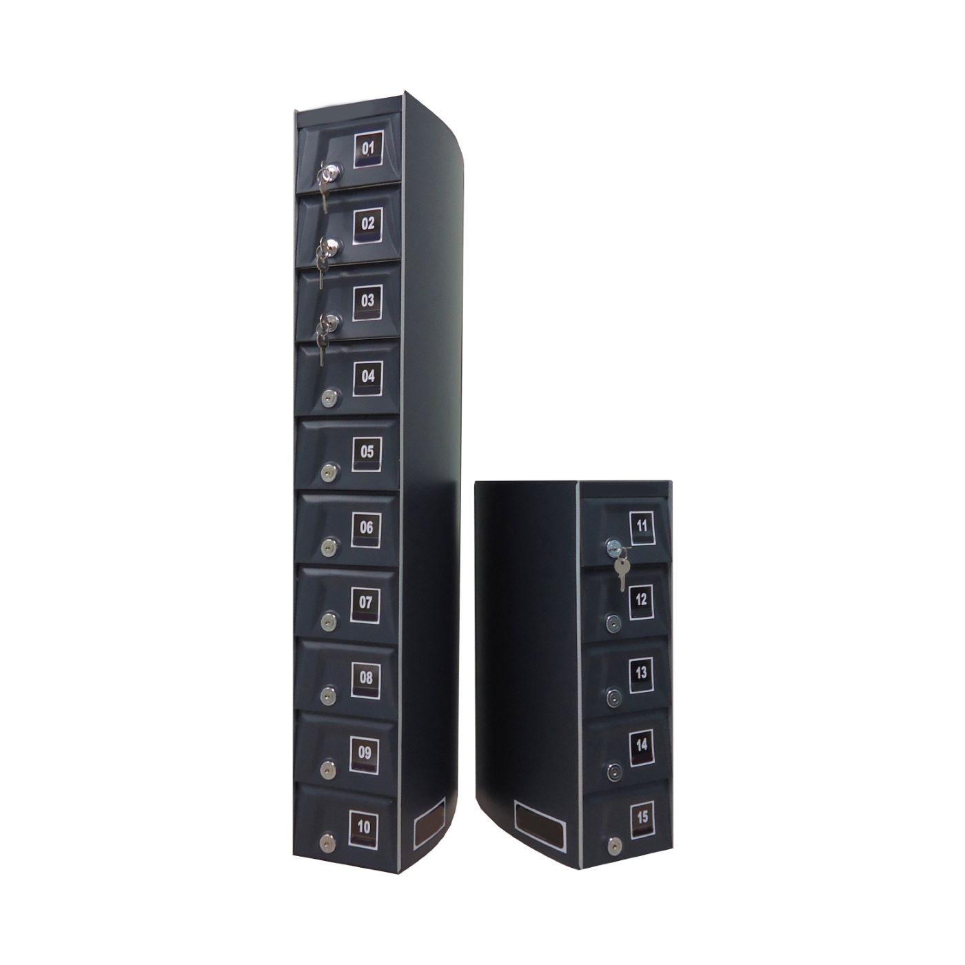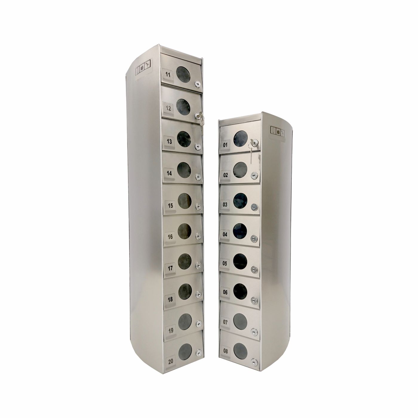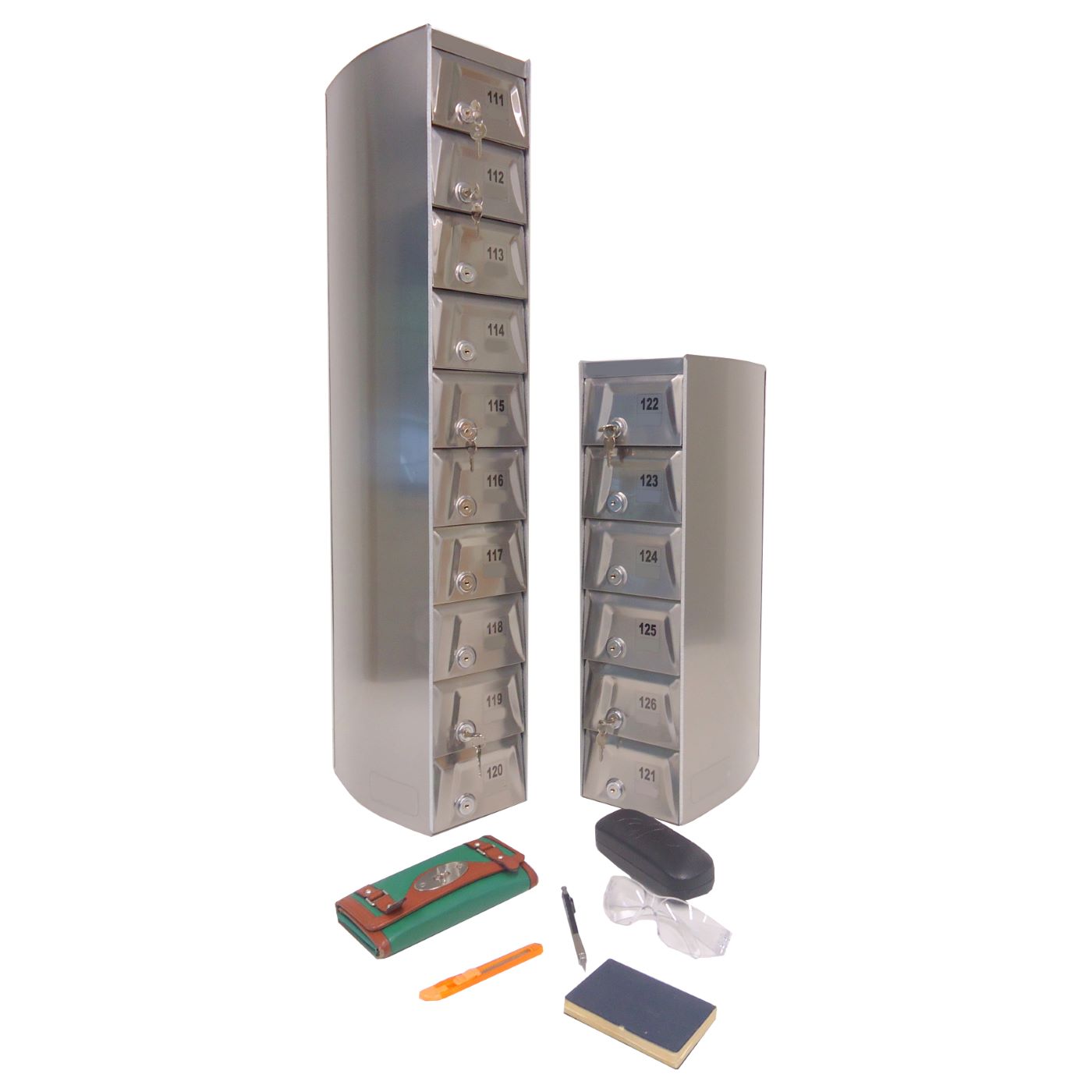 O Armário Guarda Celular é um produto que possui portas com visores ou estampadas em alto relevo, com numeração personalizada de acordo com a necessidade do cliente. Ele também conta com fechadura e duas cópias de chave. A estrutura interna do armário é fabricada em aço carbono revestido com alumínio, enquanto a estrutura externa pode ser em aço inox ou aço com pintura poliéster, disponível nas cores branca, preta, prata e cedro.