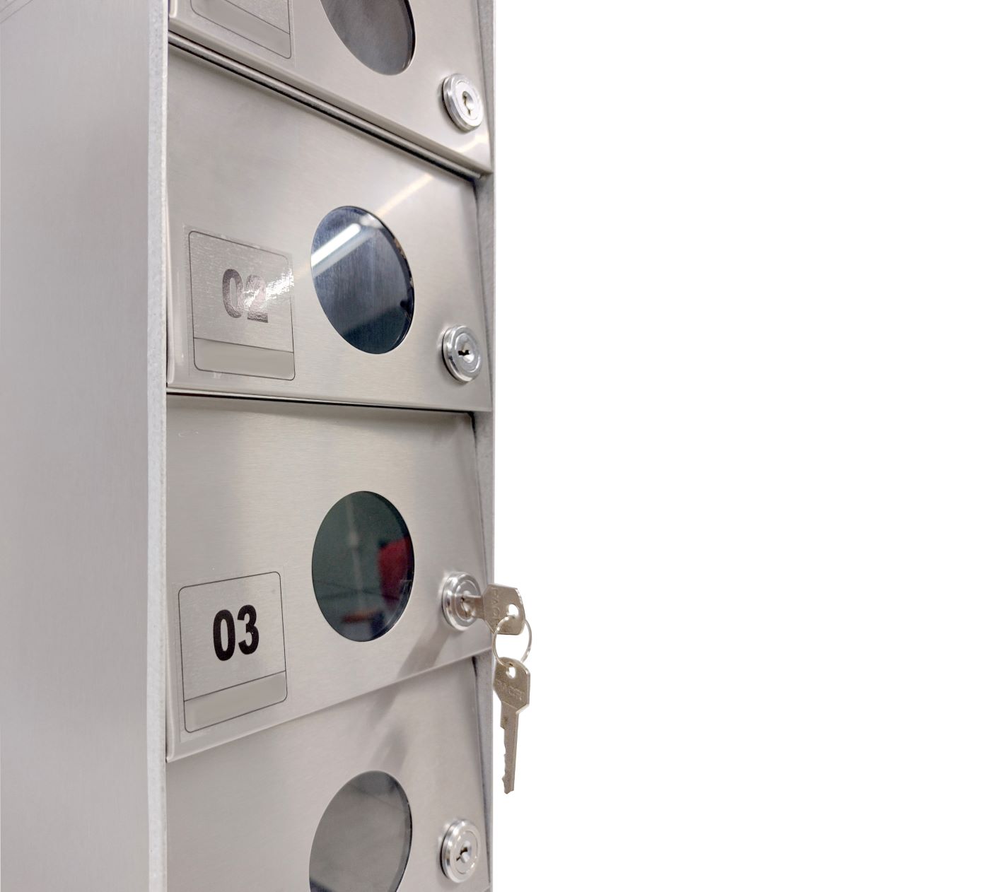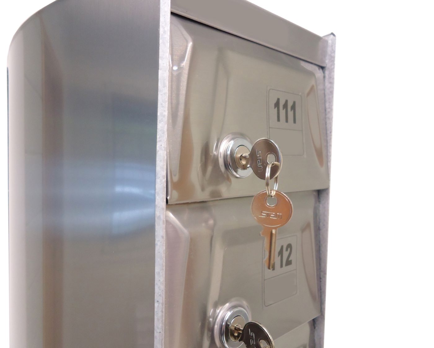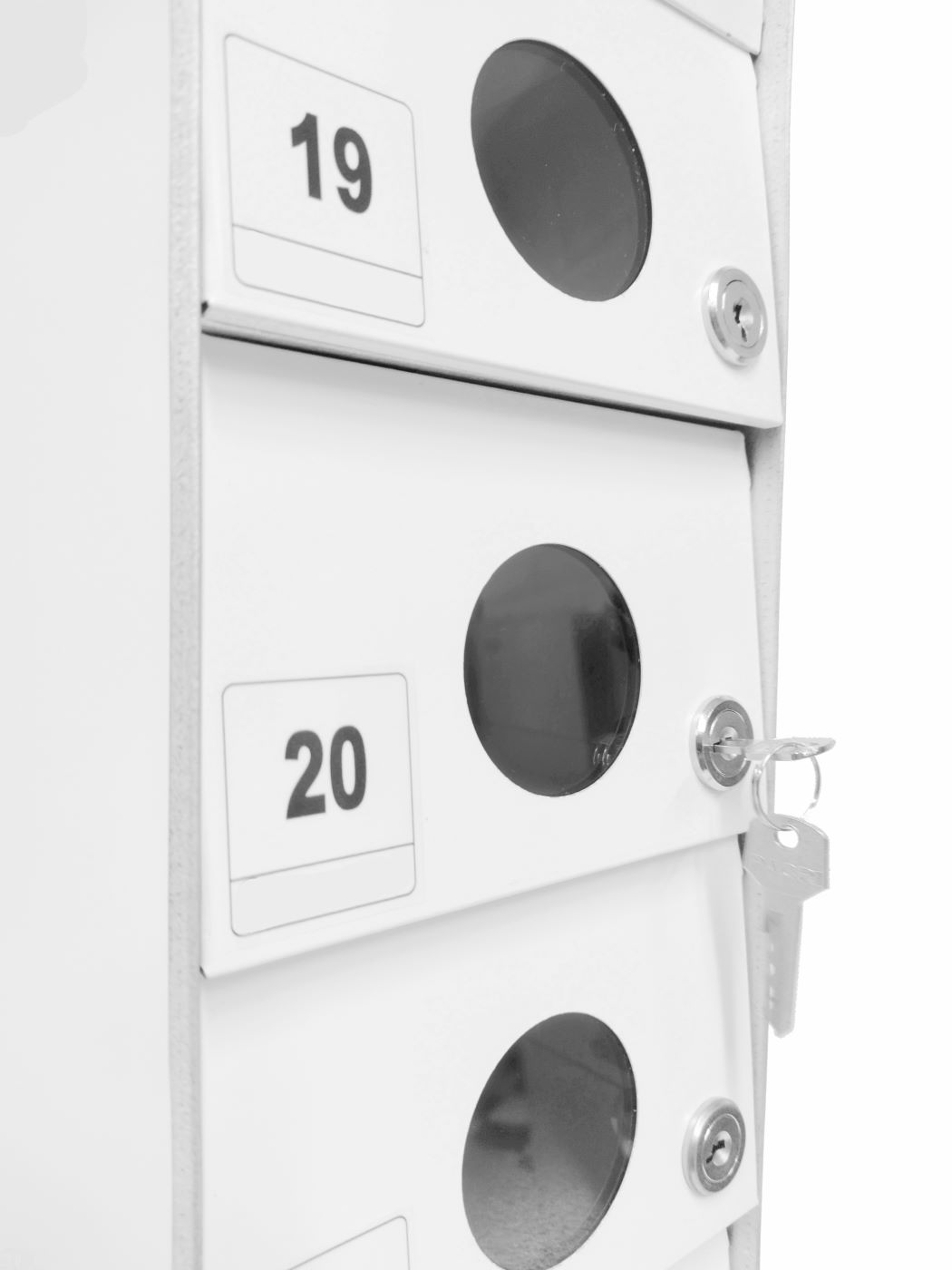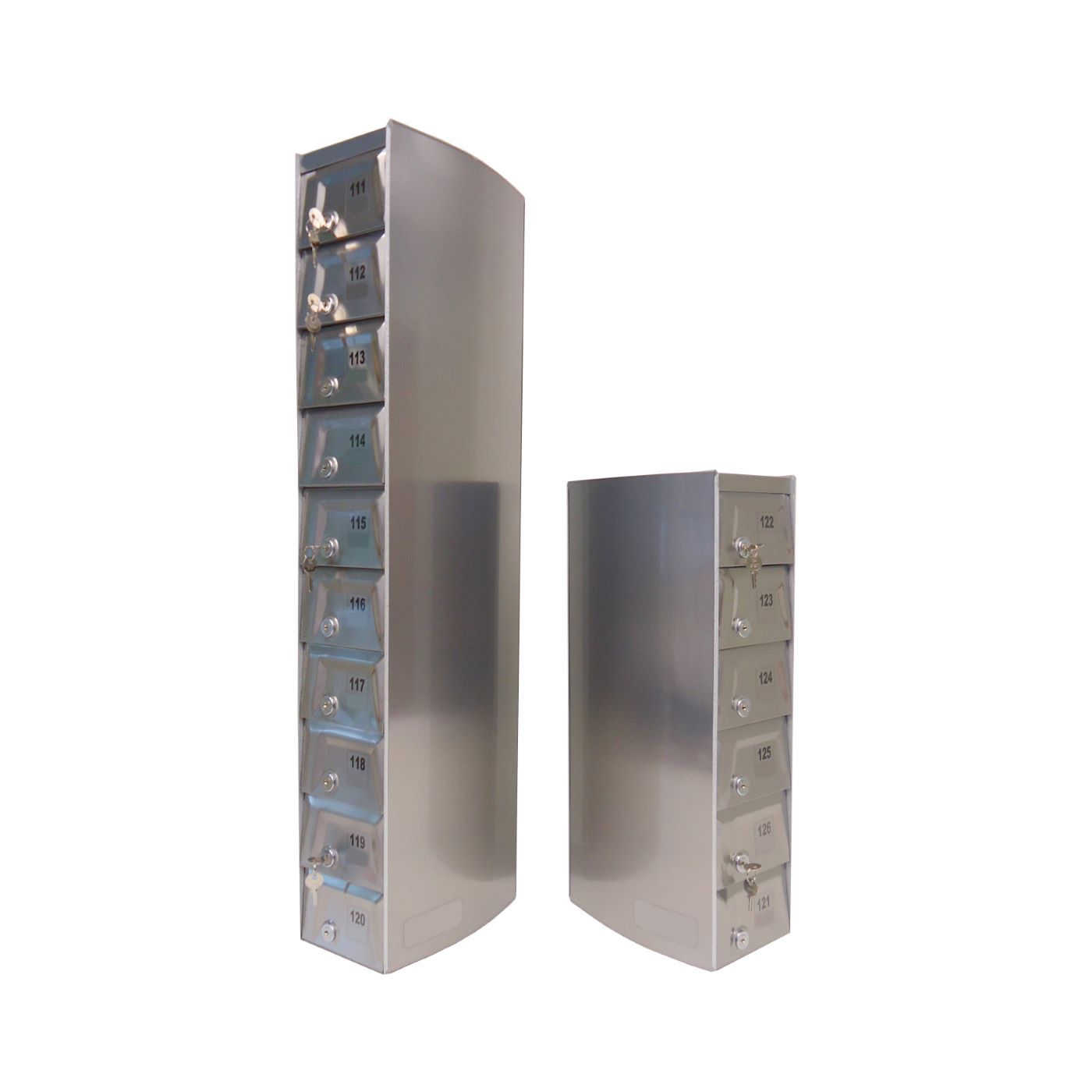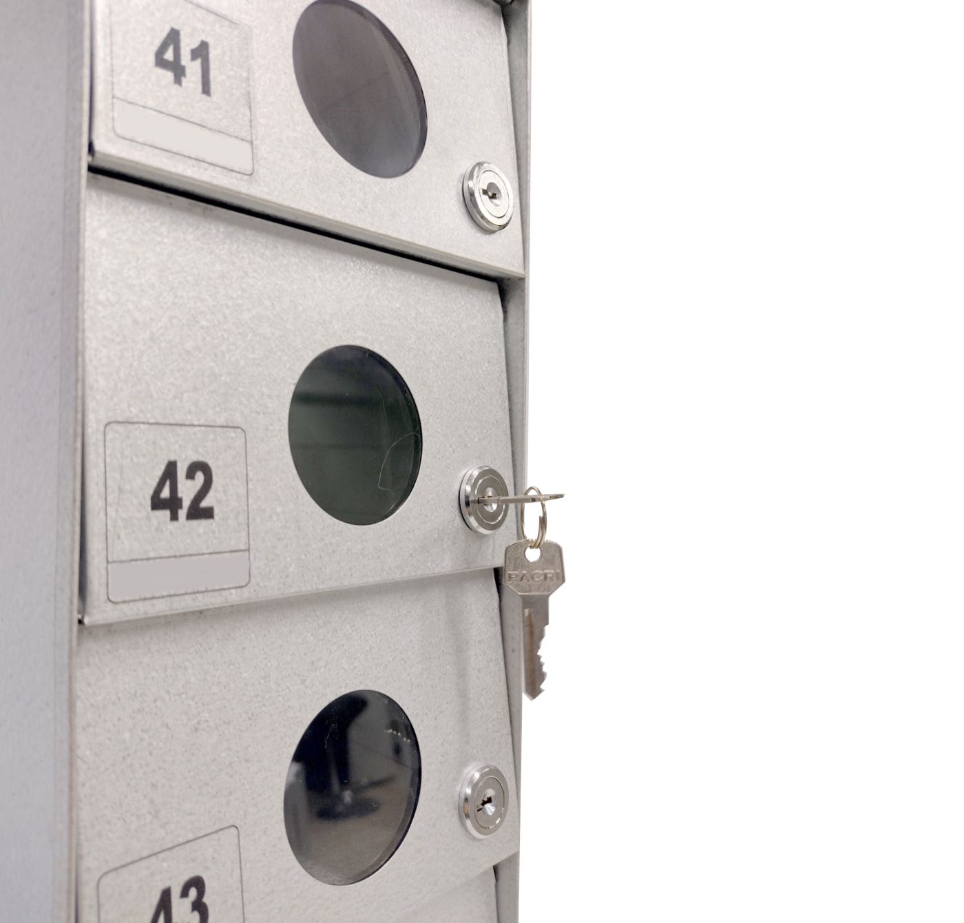 O Armário Guarda Celular é um produto que possui portas com visores ou estampadas em alto relevo, com numeração personalizada de acordo com a necessidade do cliente. Ele também conta com fechadura e duas cópias de chave. A estrutura interna do armário é fabricada em aço carbono revestido com alumínio, enquanto a estrutura externa pode ser em aço inox ou aço com pintura poliéster, disponível nas cores branca, preta, prata e cedro.